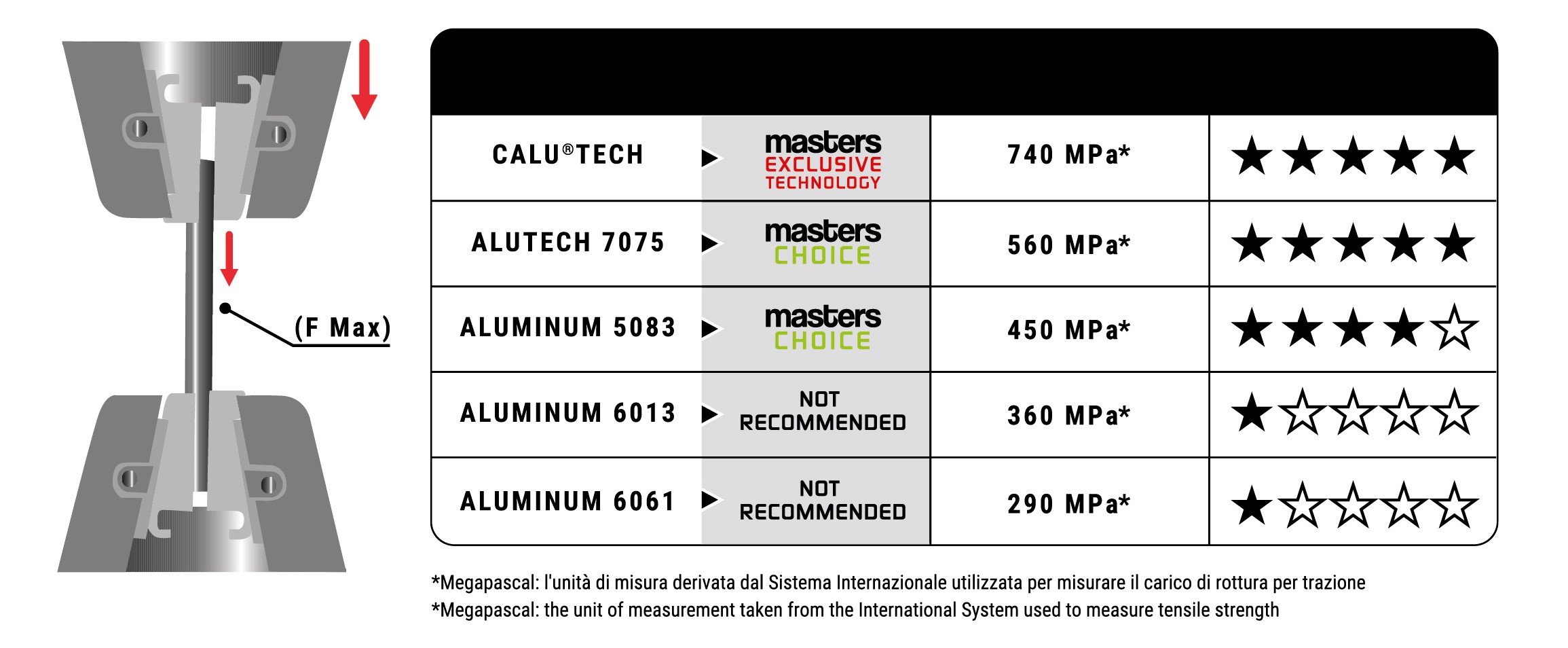 Carico di rottura: oltre 30% più resistente rispetto alla migliore lega d’alluminio nel mercato, AluTech7075
